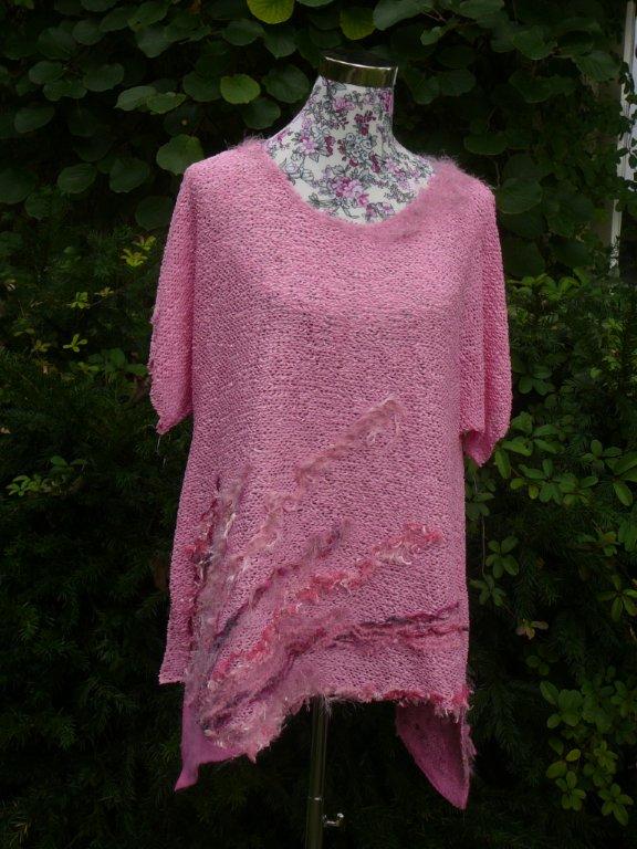 kleines Feuerwerk in Pink Aufbruch 37 Stoff: Bändelistoff, sieht aus wie gestrickt,fällt gut, untere Ecken: Fleece verfilzt Untere Saumkanten schräg geschnitten, Seitwärts mit Schlitzen, Ärmel angeschnitten Strickwolle: Diverse Materialien Grösse bis ca. 42 weitere Bilder ..... |